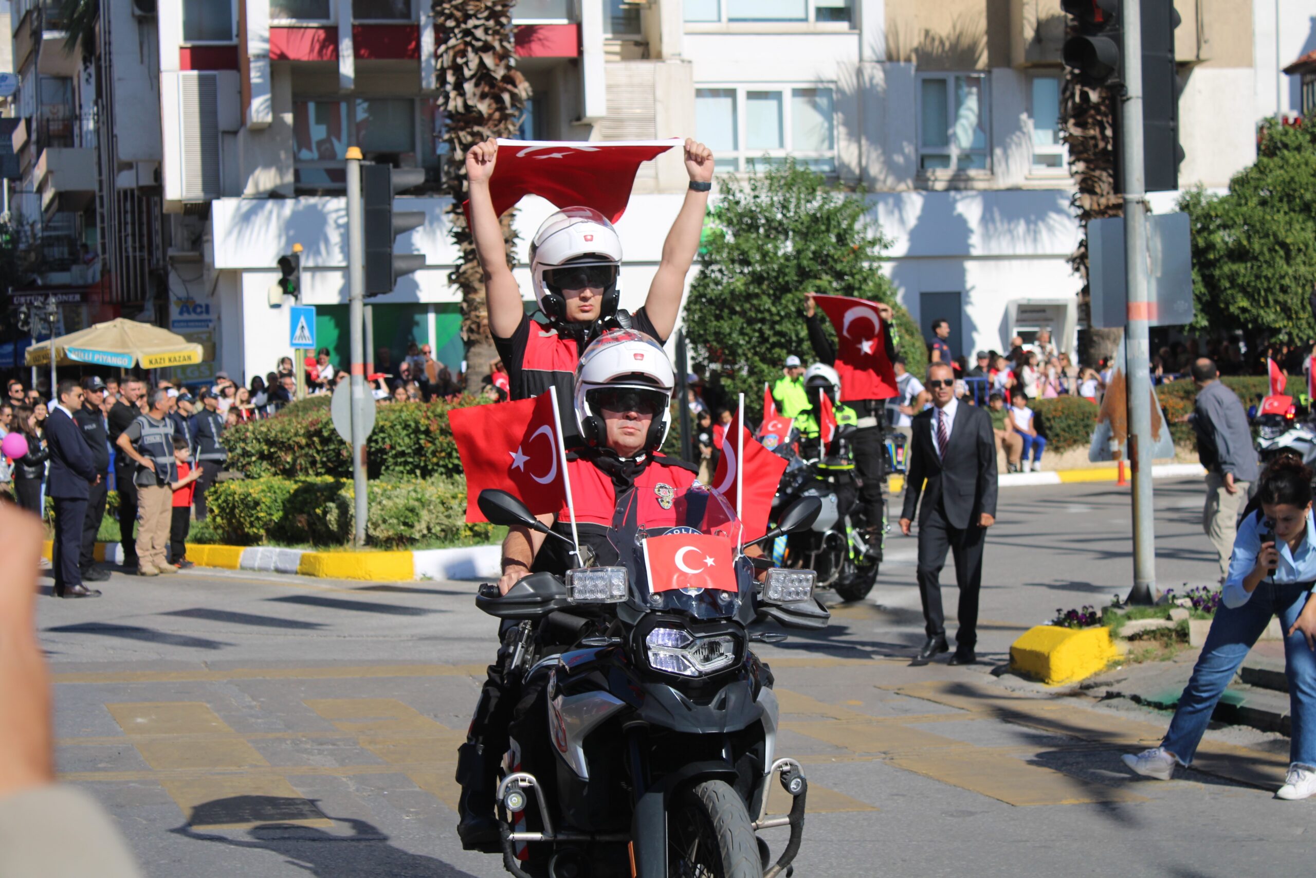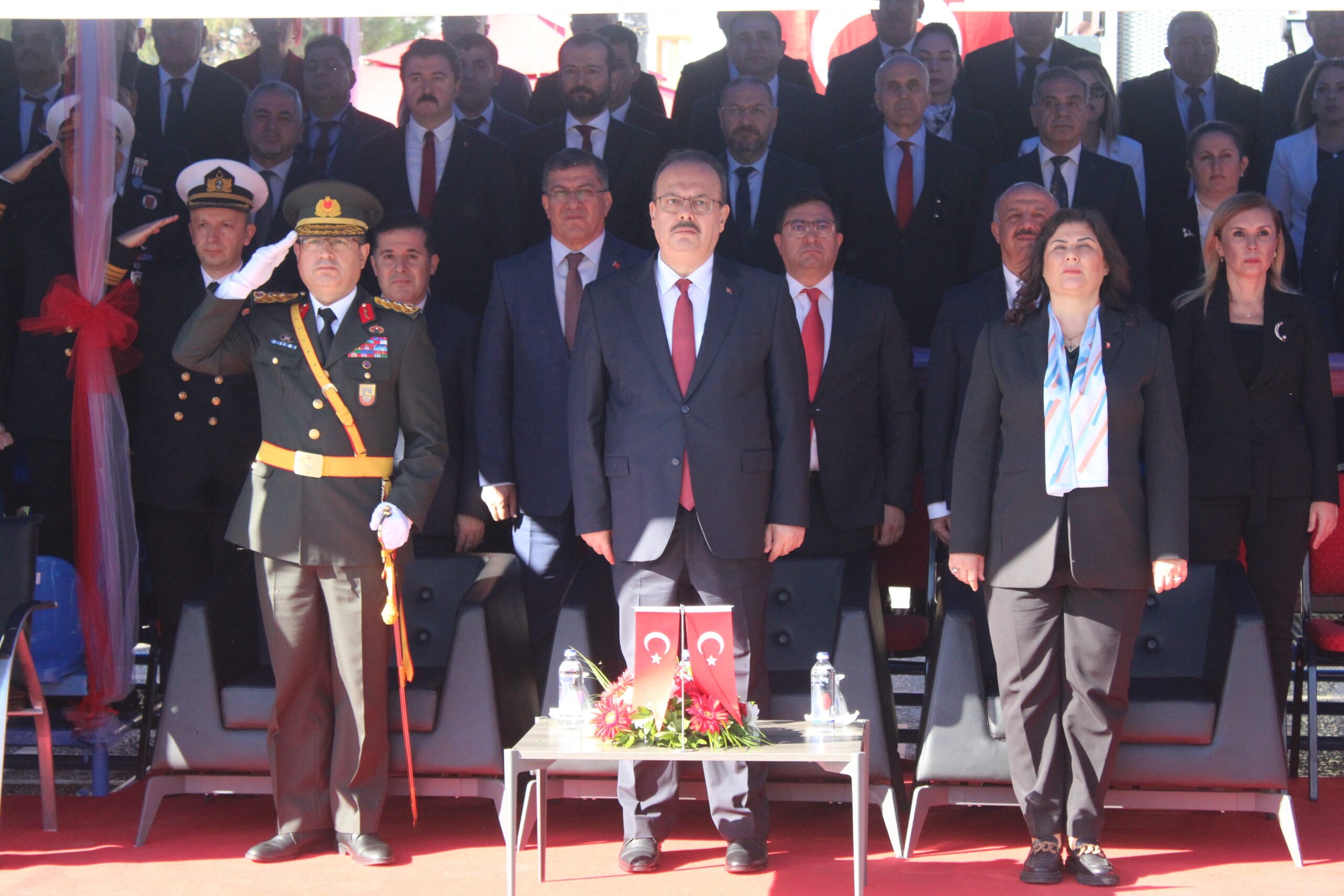 Şiirlerin okunduğu, halk oyunları gösterisinin yapıldığı törende helikopter ve muharip uçak geçişleri vatandaşlar tarafından heyecanla takip edildi. İstasyon Meydanı’ndaki kutlamalar tören geçişi ile sona erdi.