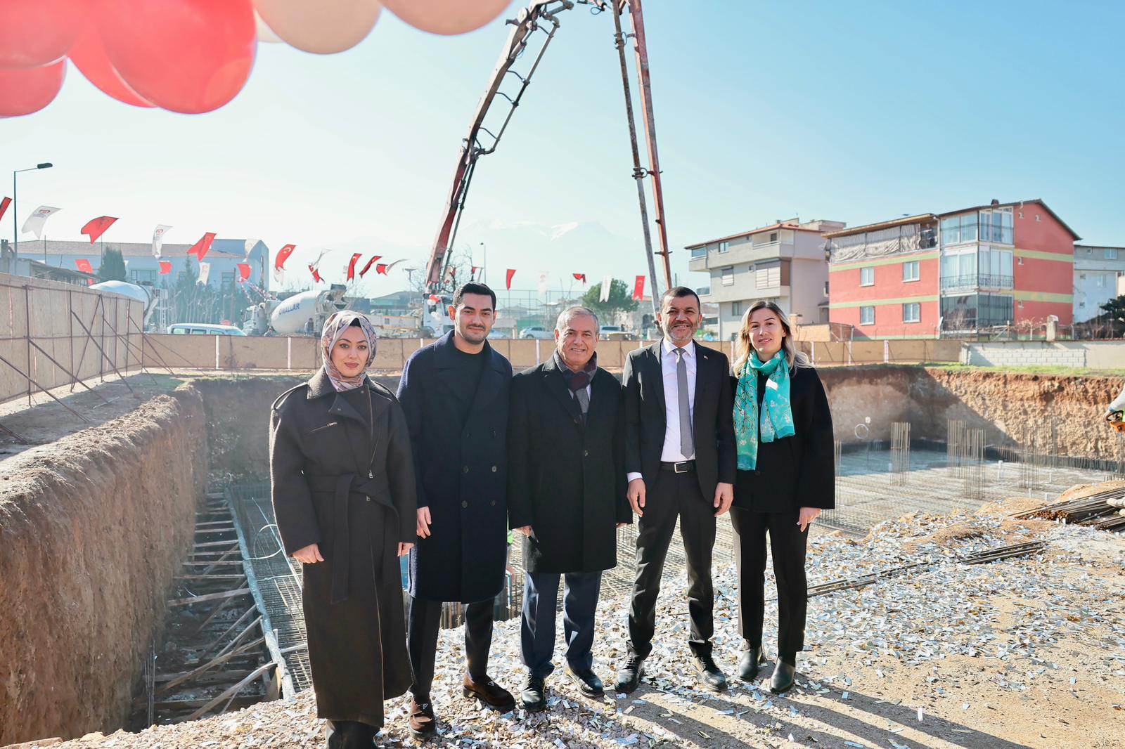 Dualar eşliğinde protokol üyeleri butona basarak merkezin temelini attı.