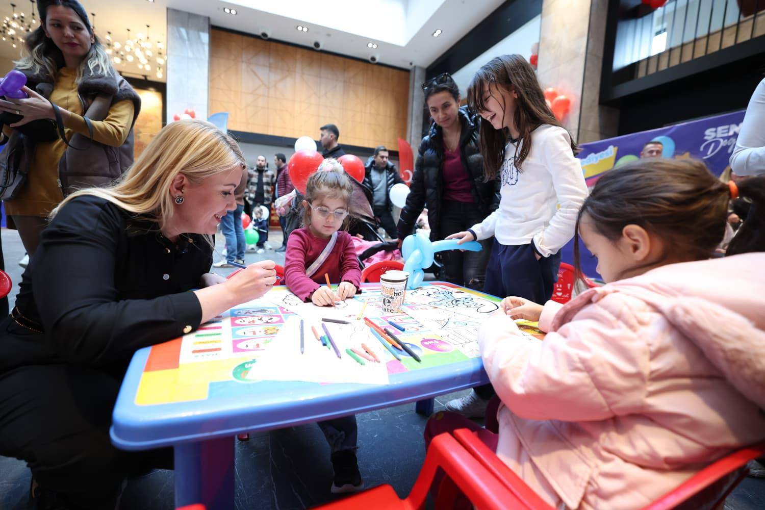 Miniklerle birlikte boyama yapan, oyunlara eşlik eden ve etkinlik alanını tek tek gezen Başkan Doğan, çocuklarla sohbet ederek onların neşesine ortak oldu.