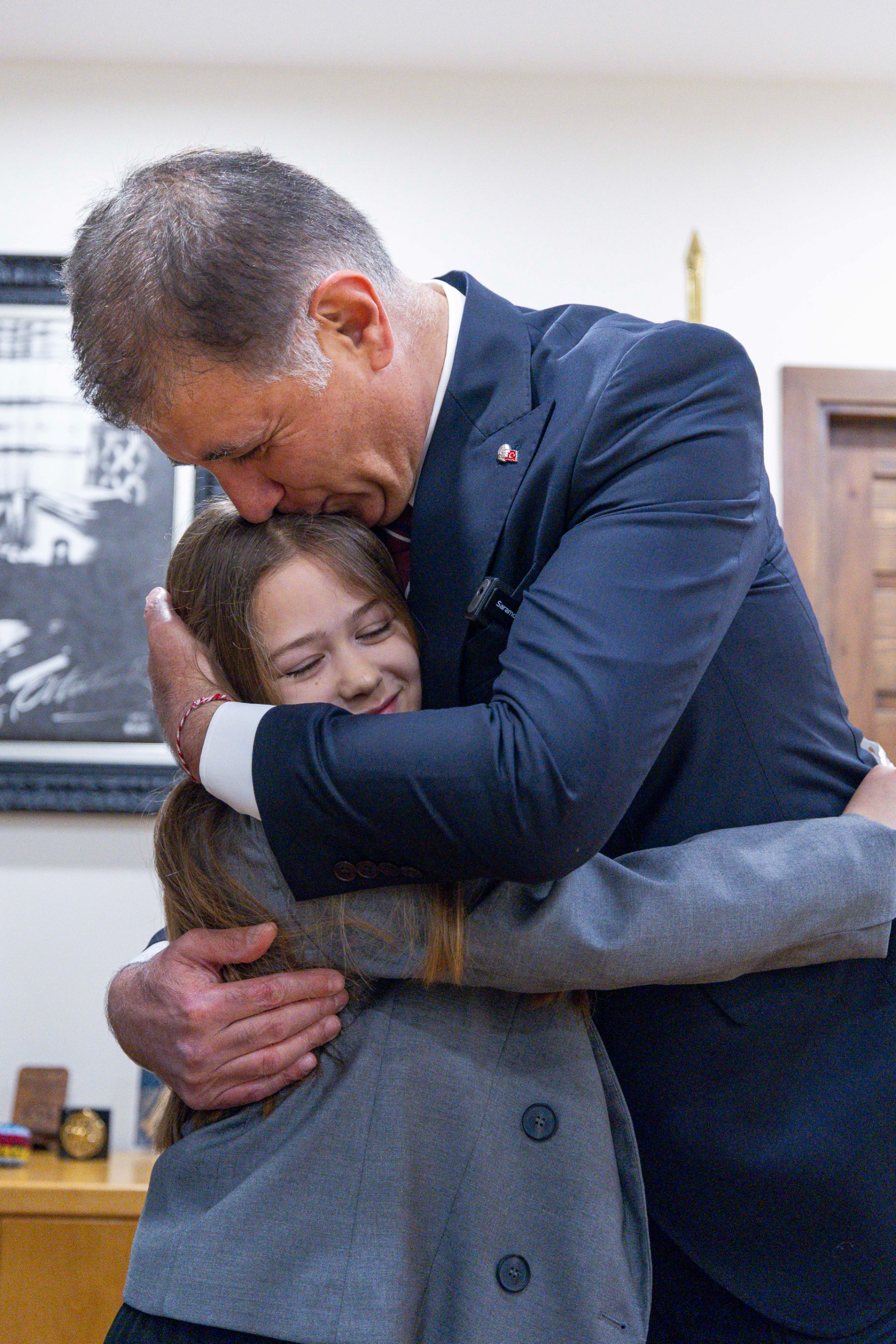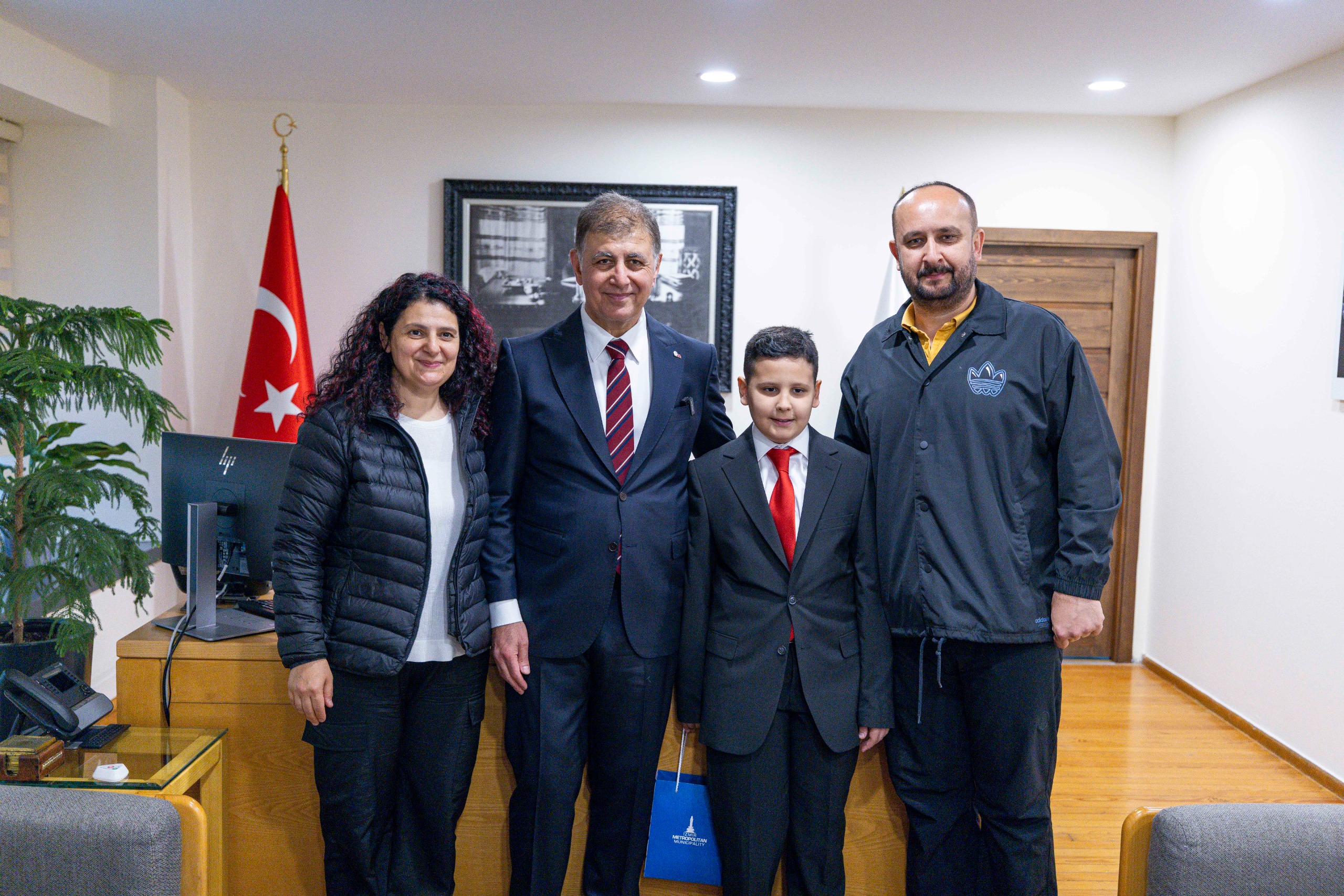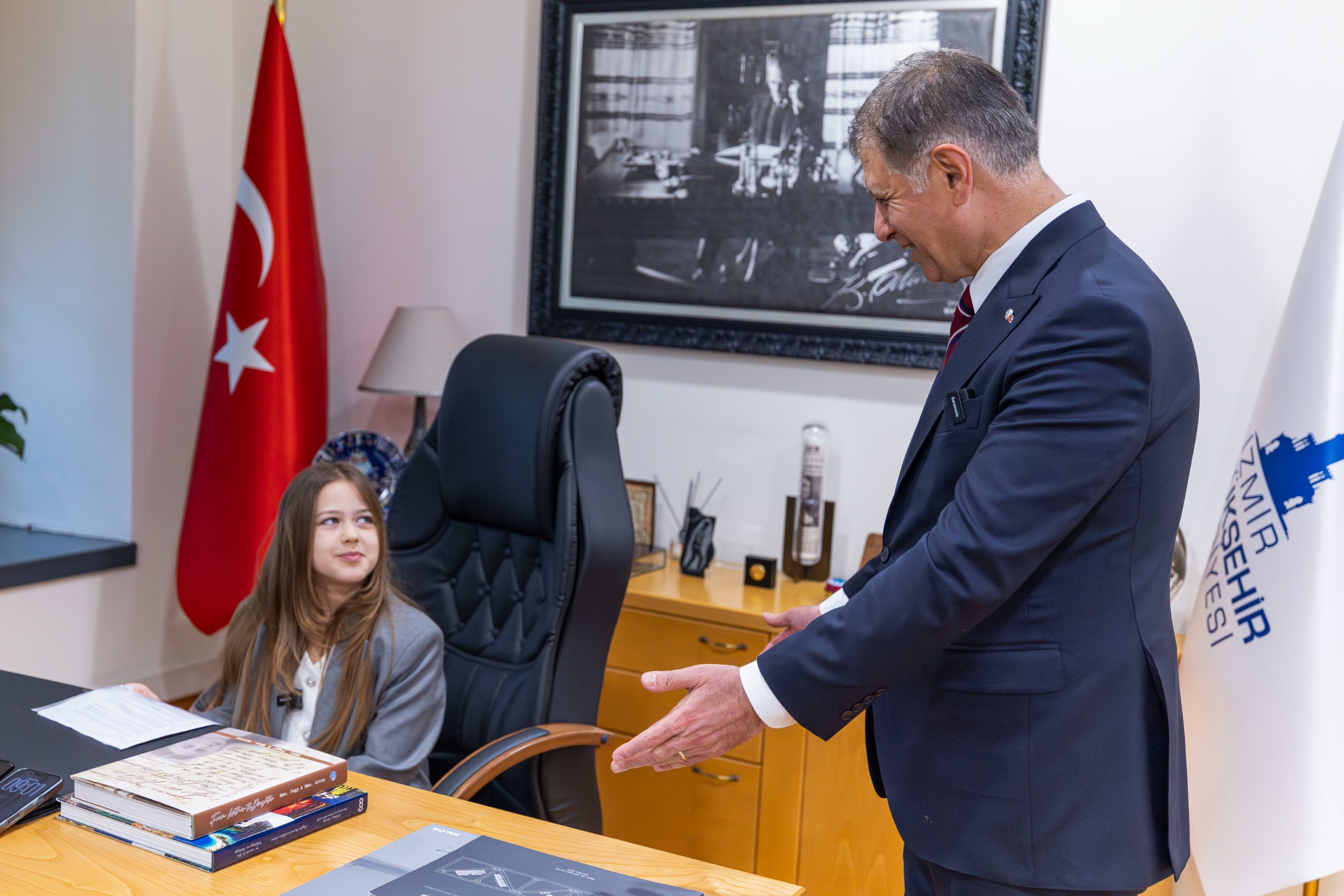 Makamında eşi Öznur Tugay ile birlikte Meryem Günay ve Aras İpek’i aileleriyle birlikte ağırlayan Başkan Tugay’a, “Bayramınızı kutluyorum. Bugün koltuğu size devredeceğim. İleride zaten sizler bu koltuklara, makamlara geleceksiniz. Her şey gönlünüzden geçtiği gibi olsun” dedi.