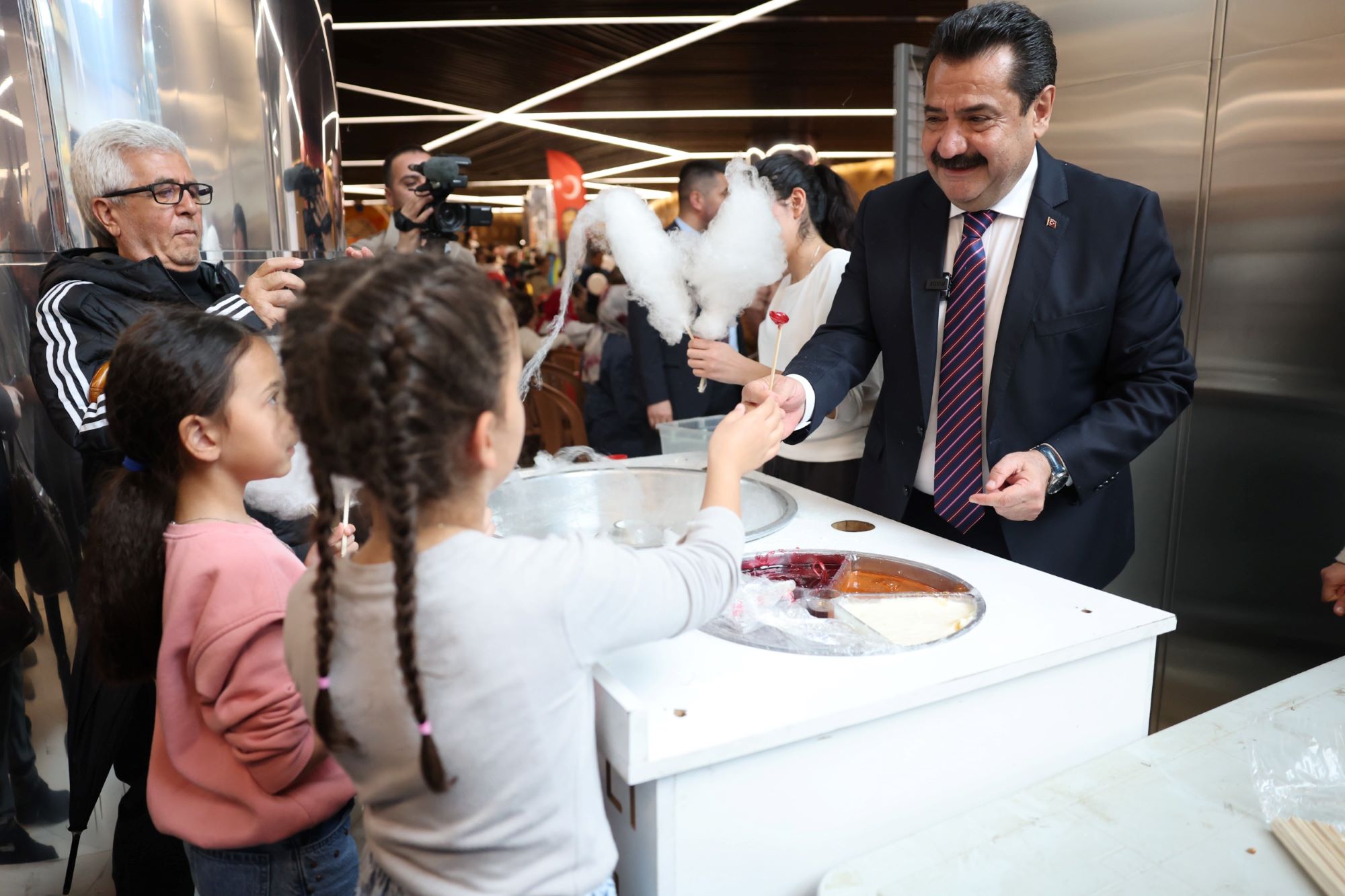 Pamuk şeker standının başına geçerek kendi elleriyle ikramda bulunan Pamukkale Belediye Başkanı Ali Rıza Ertemur, hem çocukların hem de ebeveynlerin takdirini topladı