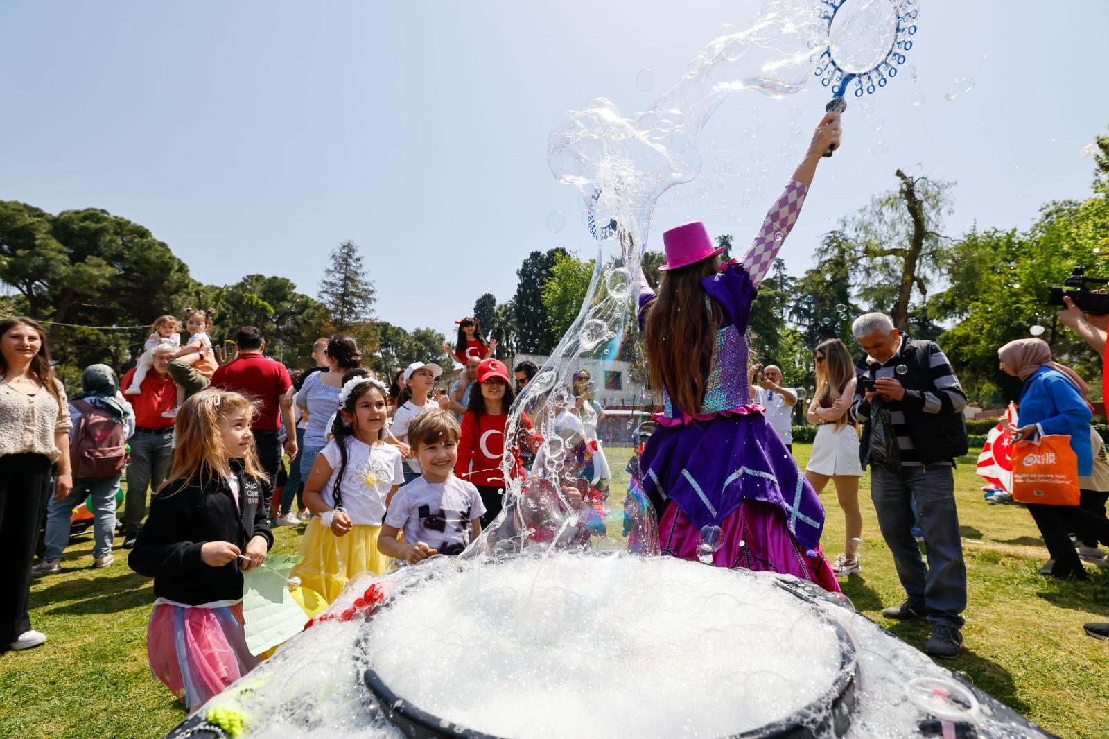İzmir’de 23 Nisan Ulusal Egemenlik ve Çocuk Bayramı, İzmir Büyükşehir Belediyesi’nin kentin dört bir yanında düzenlediği etkinliklerle coşkuyla kutlanıyor. 1-22 Nisan tarihleri arasında 17 ilçede gezici programları çocuklarla buluşturan İzmir Büyükşehir Belediyesi, finali Kültürpark’ta yapılacak kutlamayla taçlandıracak. İzmir Büyükşehir Belediyesi Kadın ve Aile Hizmetleri Dairesi Başkanlığı’na bağlı Çocuk Çalışmaları Şube Müdürlüğü koordinasyonunda, Kültür, Sanat ve Sosyal İşler Dairesi Başkanlığı’nın paydaşlığında gerçekleştirilecek etkinliklerde; çocukların kendilerini ifade edebileceği ve birlikte vakit geçirebileceği alanlar oluşturulacak.