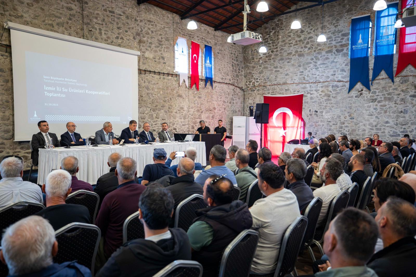 İzmir Büyükşehir Belediye Başkanı Dr. Cemil Tugay, Tarihi Havagazı Fabrikası’nda düzenlenen İzmir Su Ürünleri Kooperatifleri toplantısına katıldı. “Denizimiz bir, ekmeğimiz bir, gücümüz bir“ sloganıyla düzenlenen toplantıda İzmir Büyükşehir Belediyesi Genel Sekreteri Zeki Yıldırım, Genel Sekreter Yardımcısı Halit Çelik ile belediye bürokratları da yer aldı. Emekli öğretim üyesi Prof. Dr. Yusuf Kurucu’nun moderatörlüğünü üstlendiği programda balıkçı esnafı sorunlarını ve taleplerini anlattı. Başkan Tugay ise sektörün geleceği için atılması gereken adımları paylaştı. Toplantıda Türkiye su ürünleri ihracatında önemli bir paya sahip olan İzmir’in, 2023 yılında ülke ihracatının yüzde 20,22’sini karşıladığı belirtildi.