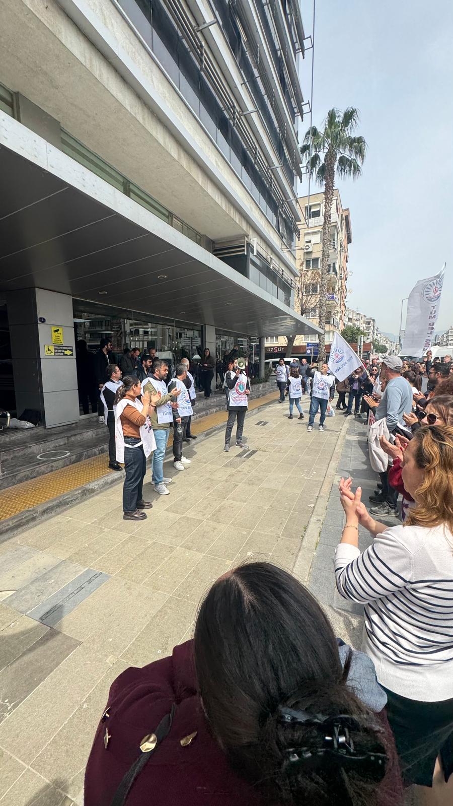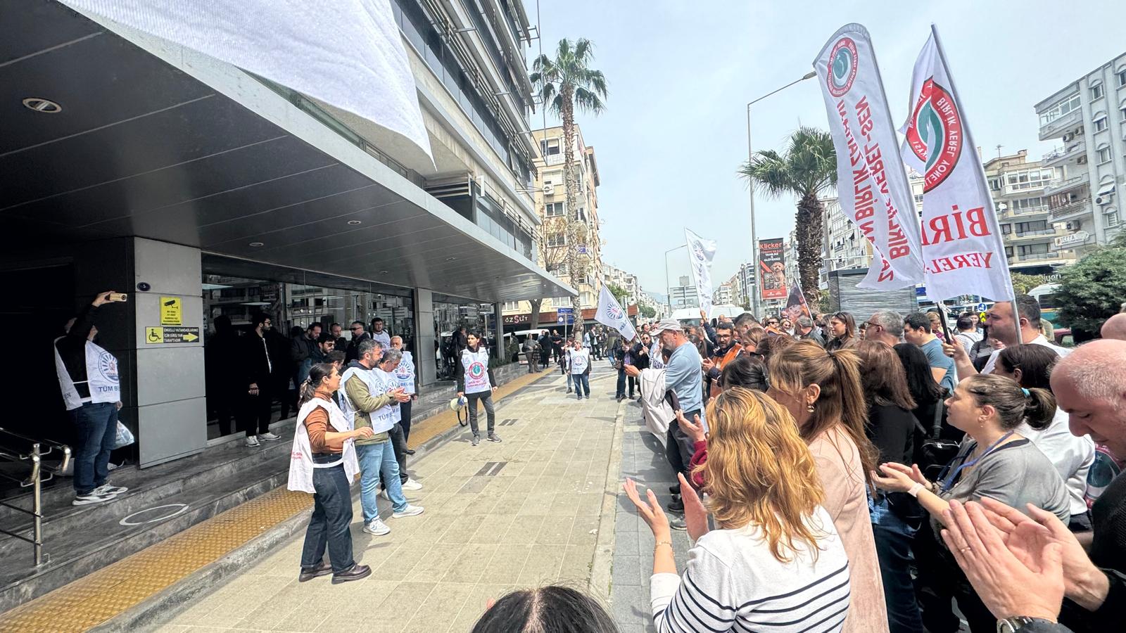 Buca Belediyesi önünde yapılan açıklamada, Karşıyaka ve Bayraklı belediyelerinde de benzer eylemlerin gerçekleştiği belirtilerek, kamu çalışanlarının hak arama sürecinin genişlediği vurgulandı.Bozat,”Bakınız bugün Buca belediyesinin önünde toplandığımız bugün Karşıyaka da, Bayraklı belediyesinde de memurlar eylemde. Buradan ekmeğine ve emeğine sahip çıkan tüm memurlara selam olsun. Birlik Yerel-Sen olarak, çalışanların alın teriyle, emeğiyle biriktirdiği hakların görmezden gelinmesini asla kabul etmiyoruz. Her türlü baskı ve tehdit ne kadar büyük olursa olsun, üyelerimizin haklarını sonuna kadar savunacağız ve yaptığınız her eylem ve söyleme misliyle cevap vereceğiz. Çünkü biz buranın gerçek sahipleriyiz ve sadece emeğimizin karşılığını istiyoruz. “dedi.
