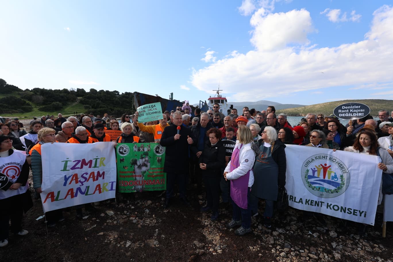 Eylemin sonunda Urla’nın turizm, tarım, temiz denizi ve eşsiz doğasıyla anılan bir kent olduğuna dikkat çekilerek, hurda metal ve ağır sanayi faaliyetlerinin bu kimlikle bağdaşmadığı belirtildi. Demircili Ada Koyu’nda bulunan hurda geminin bulunduğu bölgeden güvenli bir şekilde kaldırılarak Aliağa’daki lisanslı gemi söküm tesisine götürülmesi gerektiği vurgulandı.