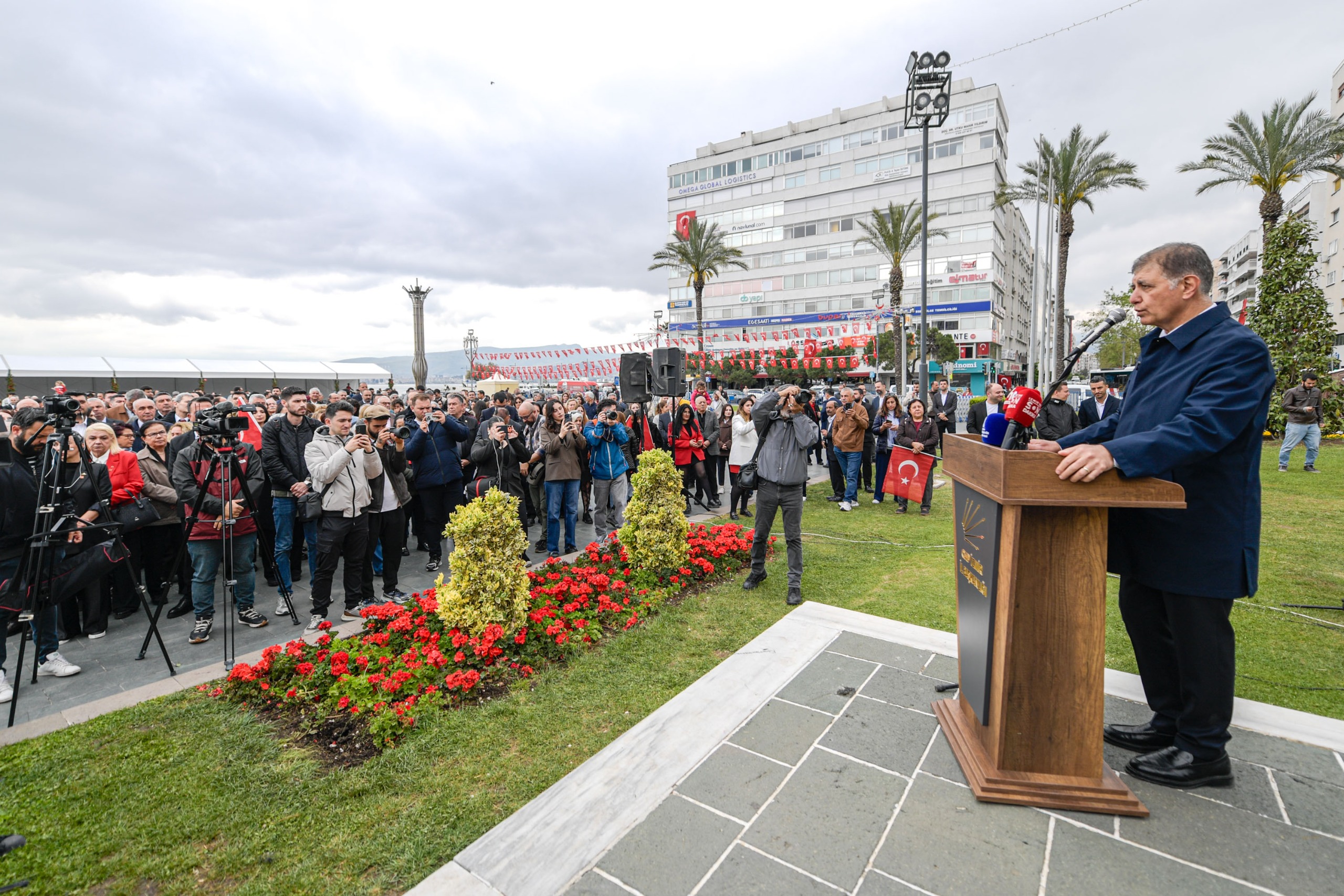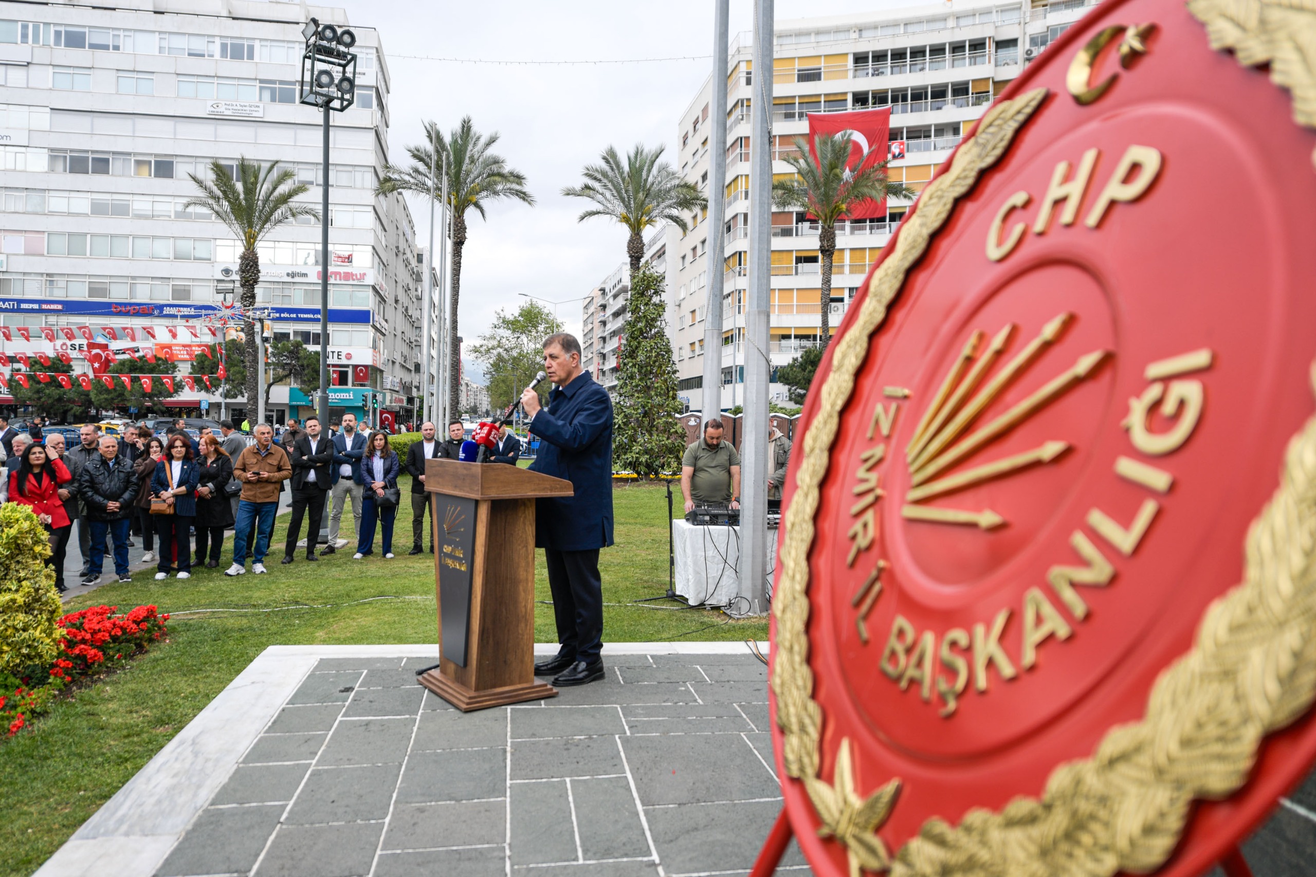 İzmir Büyükşehir Belediye Başkanı Dr. Cemil Tugay, Cumhuriyet Halk Partisi (CHP) İzmir İl Başkanlığı tarafından Cumhuriyet Meydanı’nda düzenlenen 23 Nisan Ulusal Egemenlik ve Çocuk Bayramı çelenk sunma törenine katıldı. Törende CHP İzmir İl Başkanı Çağatay Güç’ün yanı sıra ilçe örgütü başkanları, belediye başkanları, parti yöneticileri ve üyeler de yer aldı.