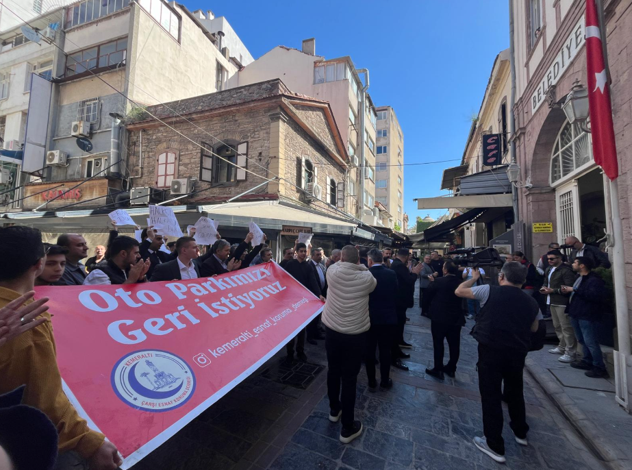 Otopark önünde basın açıklaması yapan Kemeraltı Esnaf Koruma Derneği Başkanı Zafer Bilici, “Daha önce sesimizi duyuralım diye protestomuzu yapmıştık. Ama sesimizi duyan olmadı. Hiçbir yetkiliye ulaşamıyoruz. Kimi aradıysak kapılar kapanıyor. Kimsenin bu esnafı dinlediği yok, sözünün geçtiği yok. Biz söylediğimiz sözün arkasındayız. Kavga çıkarmak için ya da bir siyasi parti için değil ekmeğimize sahip çıkmak için buradayız. O yüzden bugünü milat sayıyoruz. Ama biz bir yetkilinin bize gelip ulaşıp ‘Arkadaşlar tamam sizin ekmeğiniz kutsalınız, biz de sizin yanınızdayız, derdinizle dertleniyoruz; ailenizle, çocuklarınızla ve çalışanlarınızla birlikte biz de size sahip çıkıyoruz, yanınızdayız’ demesini bekliyoruz. O yüzden bugün böyle bir etkinlik yaptık, böyle bir eylem yaptık. Bundan sonra ulaşamazsak dediğimiz gibi yani oturma eylemi, açlık eylemi elimizden ne geliyorsa, ekmeğimize sahip çıkacak ne gerekiyorsa hepsini yapmakta kararlıyız” dedi.
