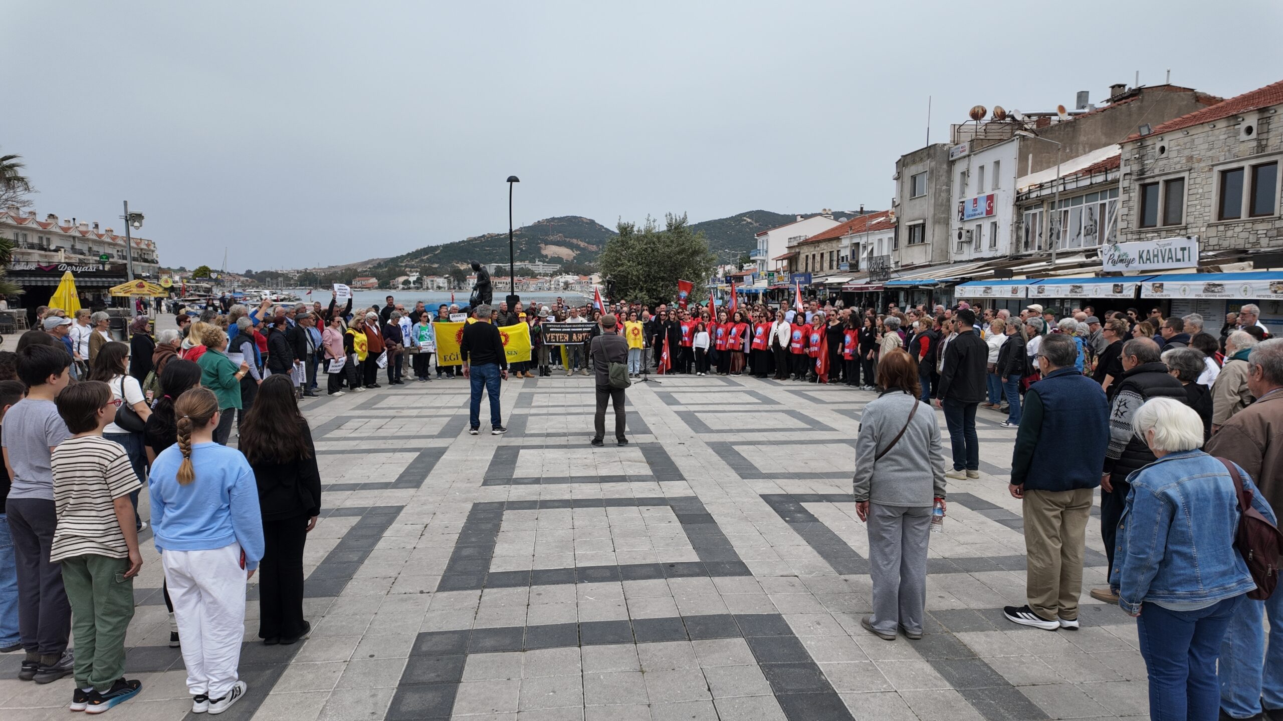 Meydanda ilk konuşmaları yapanlardan Foça Belediye Meclis üyesi Mehtap Uyar, “Yaşatmak ve eğitmek birbirine sıkı sıkıya bağlıdır. Birini korumadan diğerini yüceltmek mümkün değildir. Çocuklarımızın aydınlık yarınları ve eğitim emekçilerimizin onurlu mücadelesi için yaşam hakkı hepimizin ortak sorumluluğudur” derken, eğitimci Tarkan Uzun, “Okullarımızda yaşanan şiddet olayları aniden ortaya çıkmış değildir. 1980’li yıllardan beri uygulanan özelleştirmeci neo liberal politikaların kaçınılmaz bir sonucudur. Güvenlik önlemleri elbet alınmalıdır. Fakat ülkemizdeki bu gerici, neo liberal, piyasacı yönetim anlayışı son bulmadan tüm halkımız ve gençliğimiz için, adil, demokratik eşitlikçi bir gelecek sağlanmadan, alınacak tüm tedbirler yetersiz kalacak, şiddet dalgası okullardan sokaklara, mahallelere, her yere yayılacaktır” dedi. Eğitimci Aylin Akmeşe’de “Çocuklarımız için buradayız. Öğretmenlerimiz için buradayız. O çocuklar ki bu ülkenin, bu dünyanın geleceği, bizim umudumuz” sözleriyle seslendikten sonra Aziz Nesin’in “Öyle Ağlasam Öyle Bir Ağlasam ki Çocuklar” dizeleriyle başlayan şiirini seslendirdi.