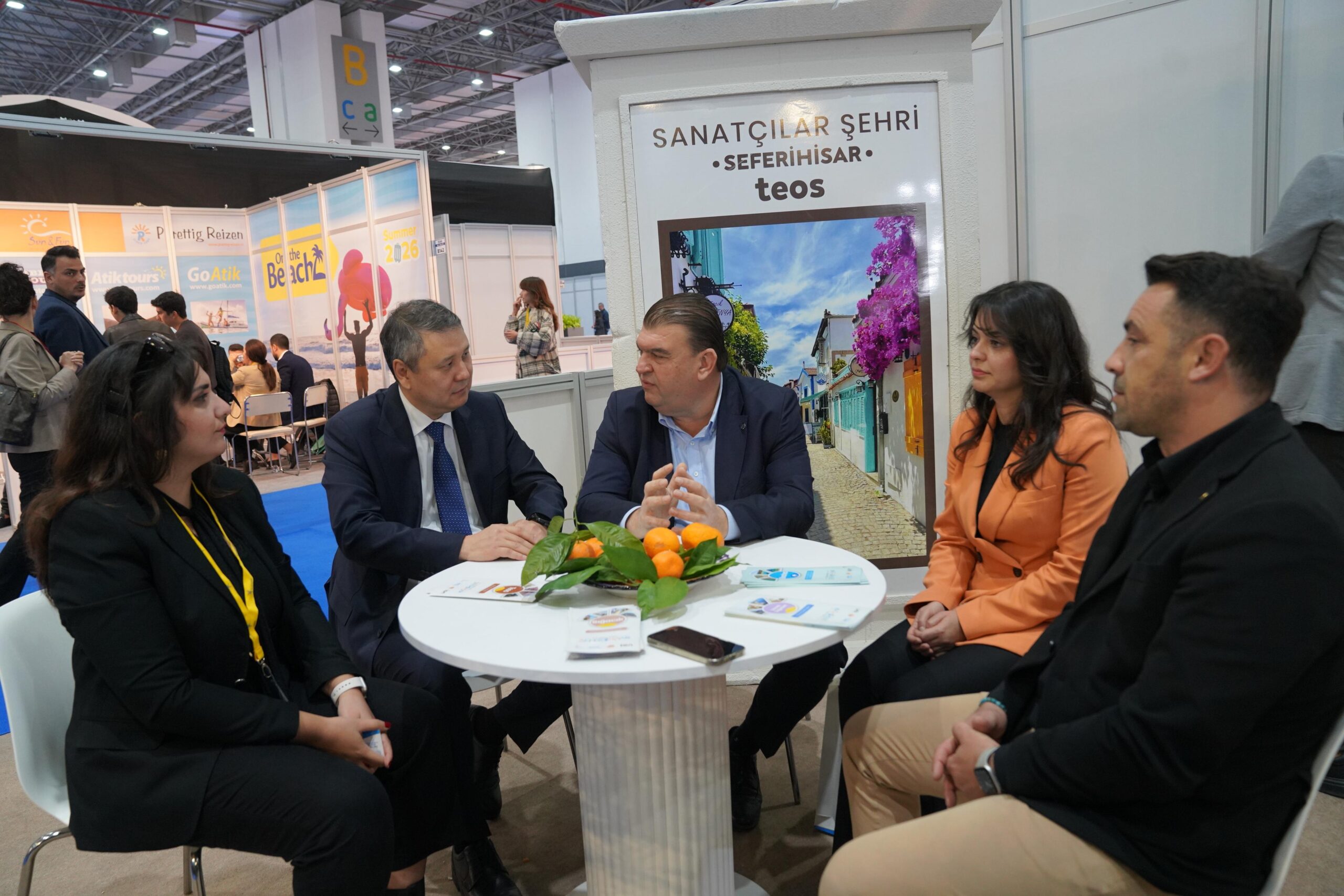 Fuar açılışında Seferihisar Belediyesi standı, ulusal ve uluslararası düzeyde önemli isimleri ağırladı. Kazakistan Başkonsolosu Bauyrzhan Akatov ve beraberindeki heyet, Seferihisar standını ziyaret ederek ilçenin turizm vizyonu, kültürel projeleri ve yeni dönem hedefleri hakkında Başkan Yetişkin’den bilgi aldı.