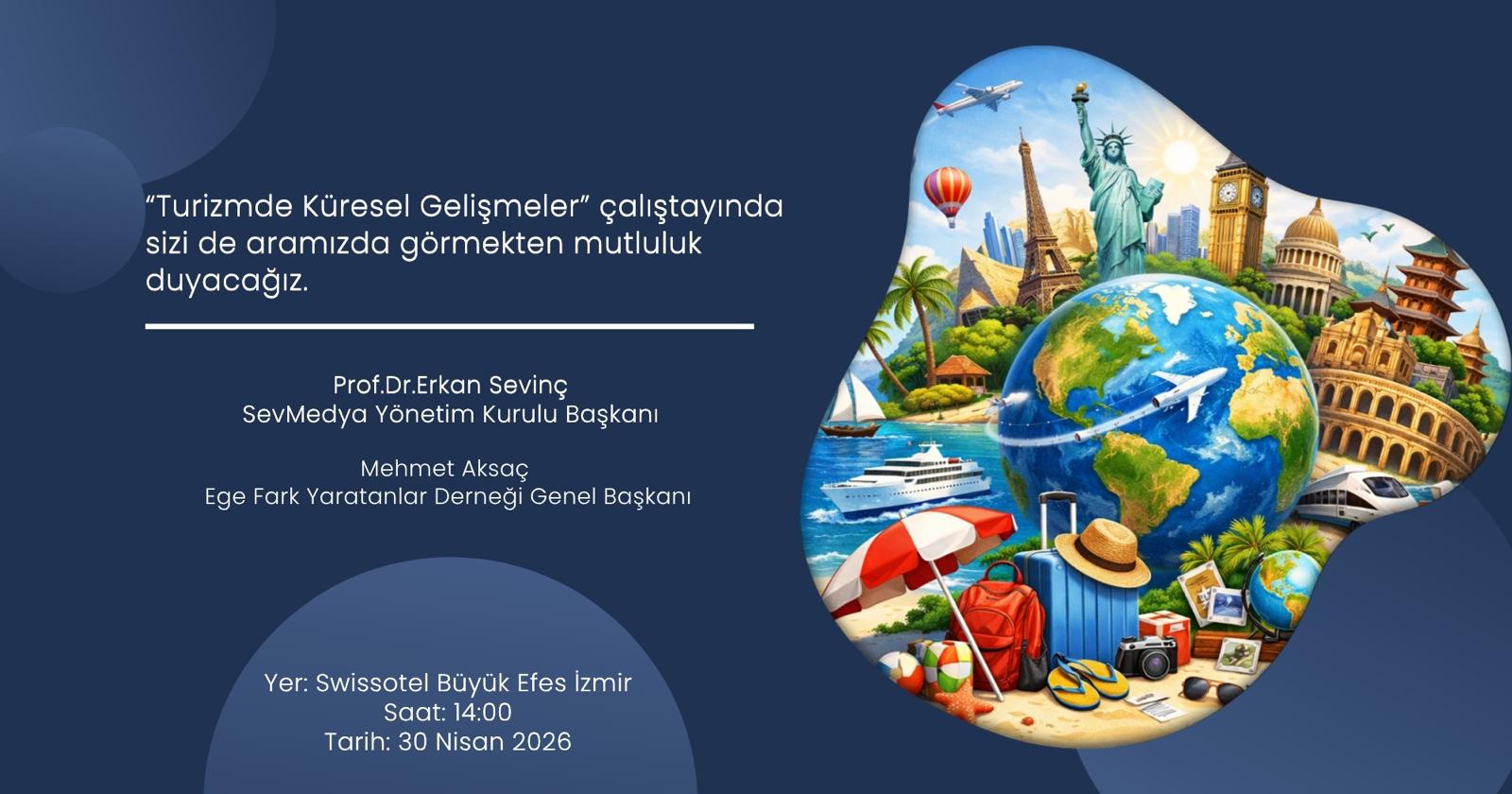 İzmir, turizm dünyasının önemli isimlerini bir araya getirecek kapsamlı bir çalıştaya ev sahipliği yapmaya hazırlanıyor. SevMedya Yayın Grubu’nun Merhaba Dergisi öncülüğünde düzenlenen “Turizmde Küresel Gelişmeler” çalıştayı, 30 Nisan 2026 Perşembe günü Swissotel Büyük Efes İzmir’de gerçekleştirilecek.