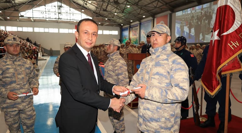 2025-9B tertip bedelli askerler, sancağın tanıtılması, saygı duruşunda bulunulması ve İstiklal Marşı’nın okunmasıyla başlayan törende eğitimlerini tamamlayarak, Türk Bayrağı ve silah üzerine ellerini koyarak yemin etti.