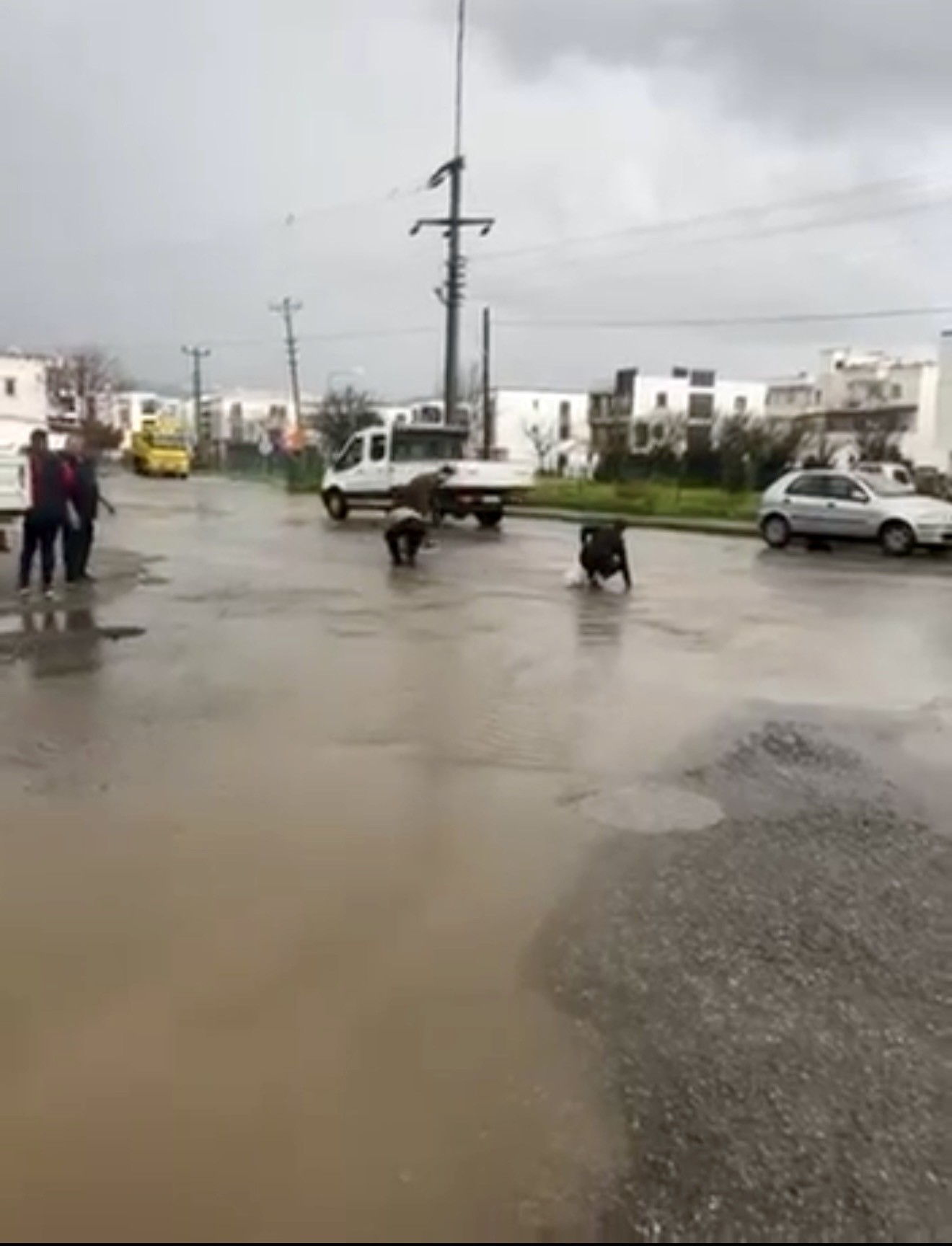 Bodrum’da etkisini artıran sağanak yağış nedeniyle Mumcular Mahallesi’nde su taşkınları yaşandı. Mustafa Kalem Parkı içerisinde bulunan gölet, yoğun yağışın ardından taştı. Göletten taşan sular kısa sürede çevredeki alanları kaplarken, gölette yaşayan balıklar da akıntıyla birlikte yola kadar sürüklendi.